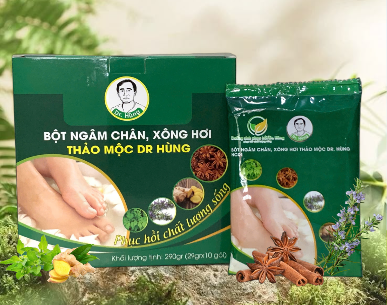 Bột ngâm chân & xông hơi Dr. Hùng – sự kết hợp tinh chọn từ các thảo dược thiên nhiên giúp làm ấm cơ thể, lưu thông khí huyết và hỗ trợ đào thải độc tố hiệu quả. Khi sử dụng, tinh chất thảo dược thẩm thấu qua da, giúp giảm mệt mỏi, thư giãn sâu, cải thiện giấc ngủ và phục hồi năng lượng sau một ngày dài. Phù hợp dùng hằng ngày hoặc kết hợp trong liệu trình dưỡng sinh để nâng cao sức khỏe từ bên trong.